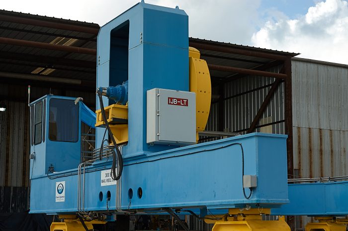 This is the RM-300, a machine designed and built by Ocean Dynamics, Inc. to manipulate large cable spools. I helped OD rewrite the control software over the summer of 2004.